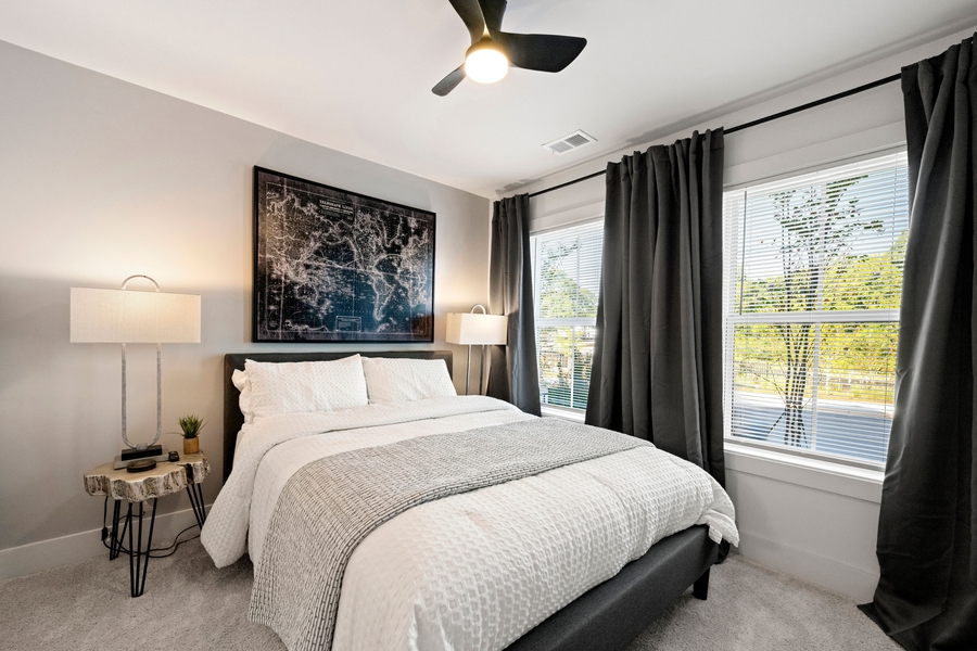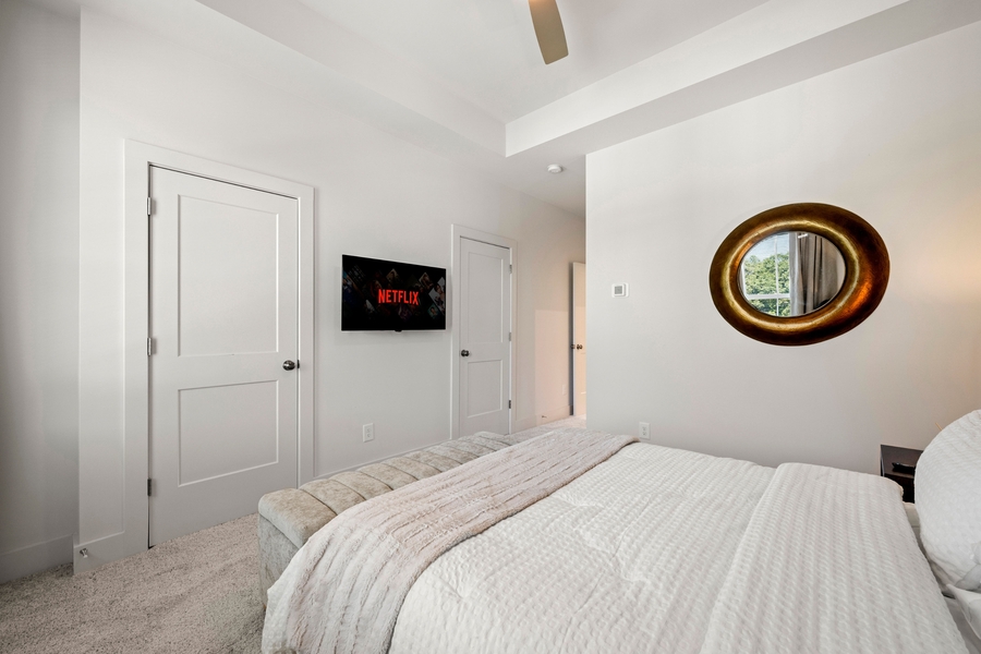 Cozy lower-level guest bedroom with easy access to shared spaces. This room provides a more budget-friendly option while still offering comfortable living within the home. Ideal for tenants seeking value and functionality.