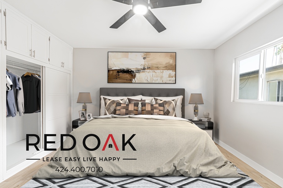 ~ Peaceful Retreat: Spacious bedroom with an closet and ceiling fan.