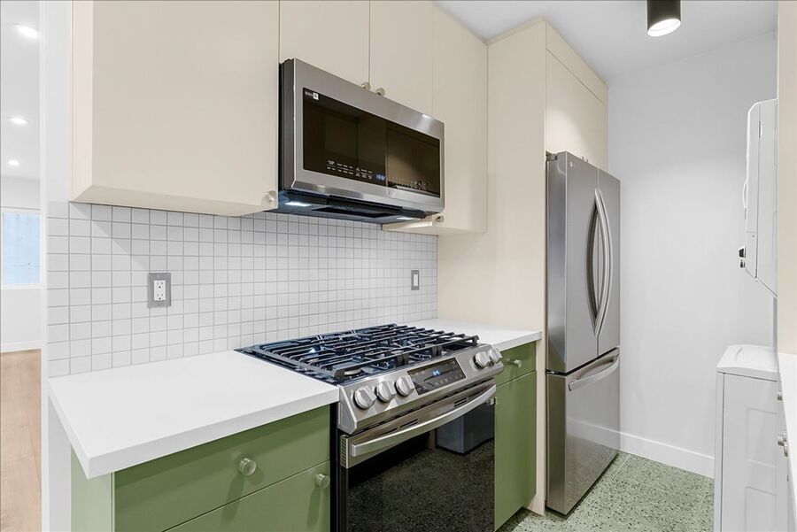 - Appliances: stove, dishwasher, refrigerator, microwave, washer, dryer