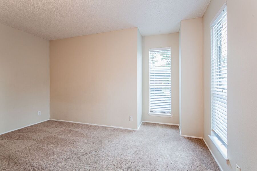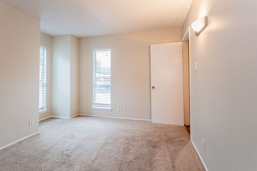 -Carpeted living room and bedrooms
