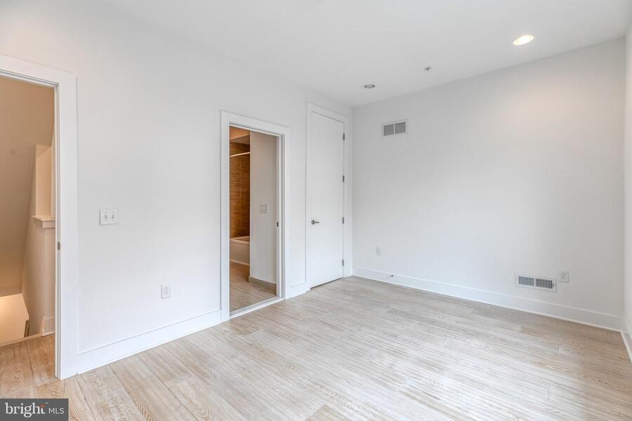 Inside, the home offers three generously sized bedrooms, each with impressive walk-in closets. The third-floor primary suite serves as a true retreat, featuring expansive dual walk-in closets and a beautifully designed en-suite bathroom. Additional bathrooms are finished with sleek porcelain tile, offering both style and convenience.
