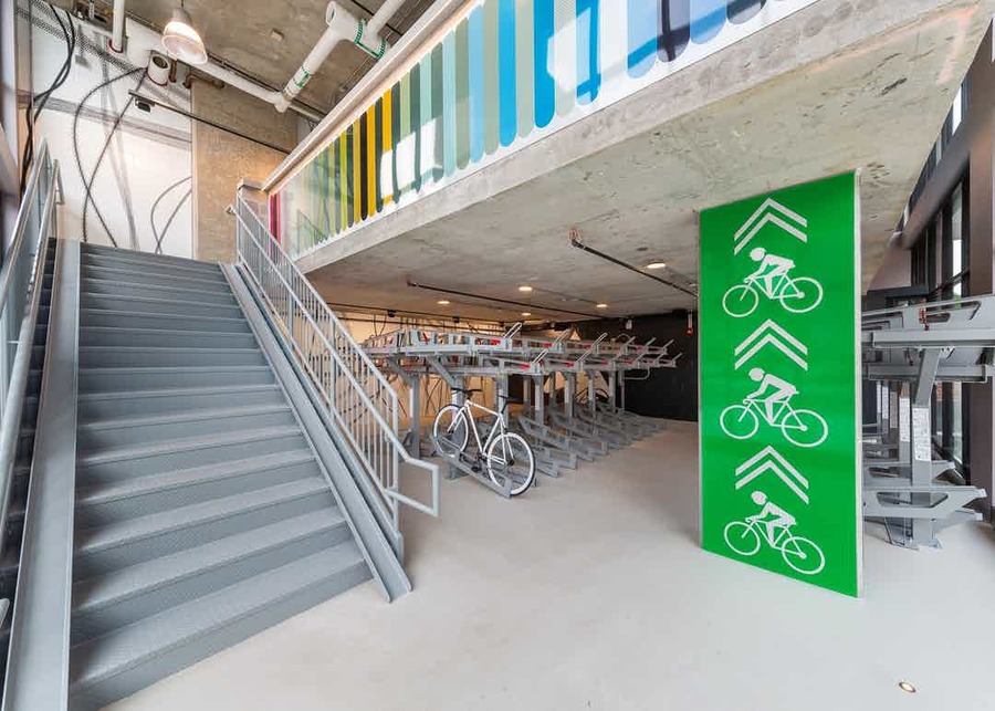 Community amenities are designed around convenience and comfort for busy city living. Helping you tackle your to-do list are two 24/7 fitness zones, a Zen lounge with coffee and juice bar, DIY crafting studio, and a two-story work-from-home center with private offices and conference rooms. A public transit tracker, Amazon package lockers, and a two-story bicycle storage and repair shop are convenient on-site services.