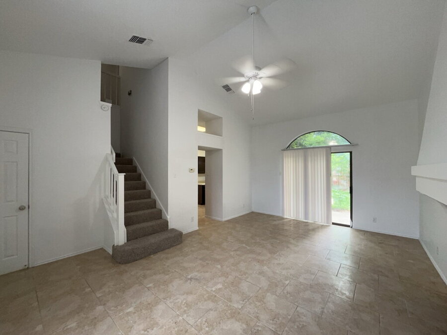 Additional features include a dedicated laundry room with washer and dryer hookups and a two-car garage for parking and storage. Step outside to enjoy a backyard with mature trees, a patio perfect for relaxing or entertaining, and a privacy fence for added seclusion. Residents also have access to a variety of community amenities, including a barbecue area, basketball court, kiddie pool, park, picnic area, playground, swimming pool, and water slides. Conveniently located near shopping, this home offers a comfortable lifestyle in a well-equipped community.