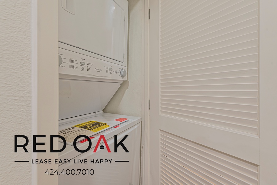 ~ In-Unit Laundry: A stackable washer and dryer are conveniently located in the hall.