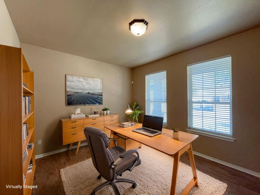 A dedicated office or studio provides a flexible space for remote work, creative pursuits, or quiet retreat. The home is equipped with modern conveniences including an alarm system, carbon monoxide detector, fireplace and HVAC with a programmable thermostat to keep you comfortable year-round.
