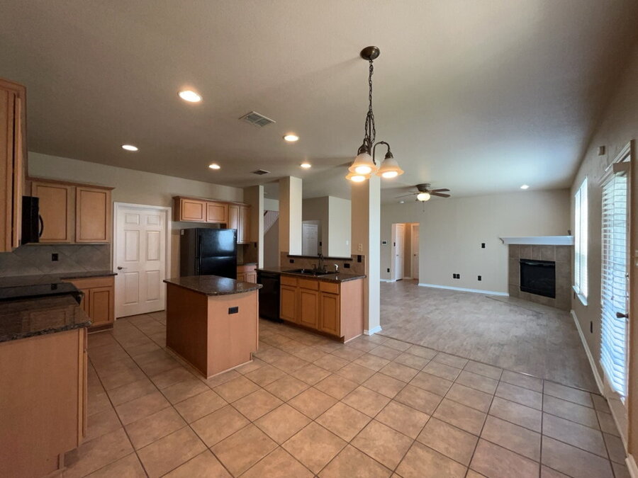 The kitchen is thoughtfully appointed for both everyday living and hosting, complete with an island, eat-in dining area, electric glass cooktop stove, dishwasher, microwave, and refrigerator, everything you need right at your fingertips.