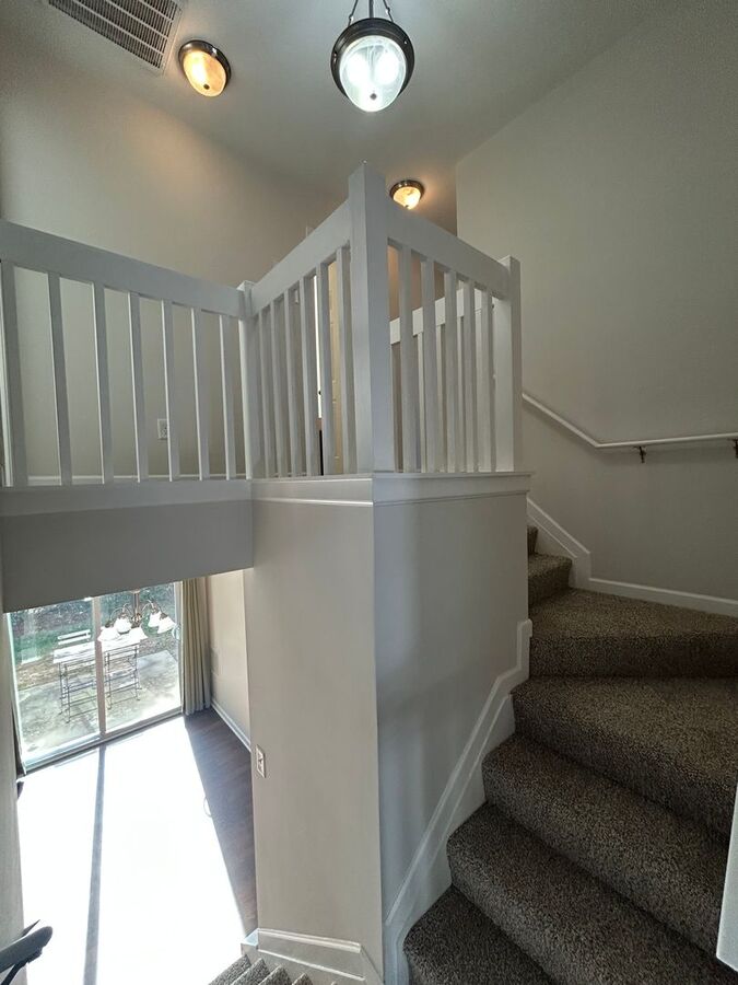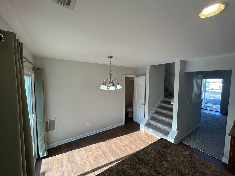 3 Bedroom 2.5 Bath Townhome - End unit with covered porch. Carpeted floors. Primary bedroom on main level. 2 more bedrooms upstairs with a full bath. Stove, fridge, microwave and dishwasher. Kitchen is eat in and had a cute little bar area. That leads to a back patio area. Washer and dryer connections in laundry room. Central air and gas heating. Also comes with 2 parking spaces. (Tenant is responsible for all utilities)