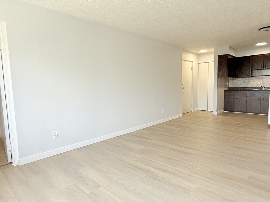 Bright and spacious 2-bedroom, 1-bathroom apartment with an open-concept kitchen and living room. Recently updated with new flooring, fresh paint, and modern fixtures.