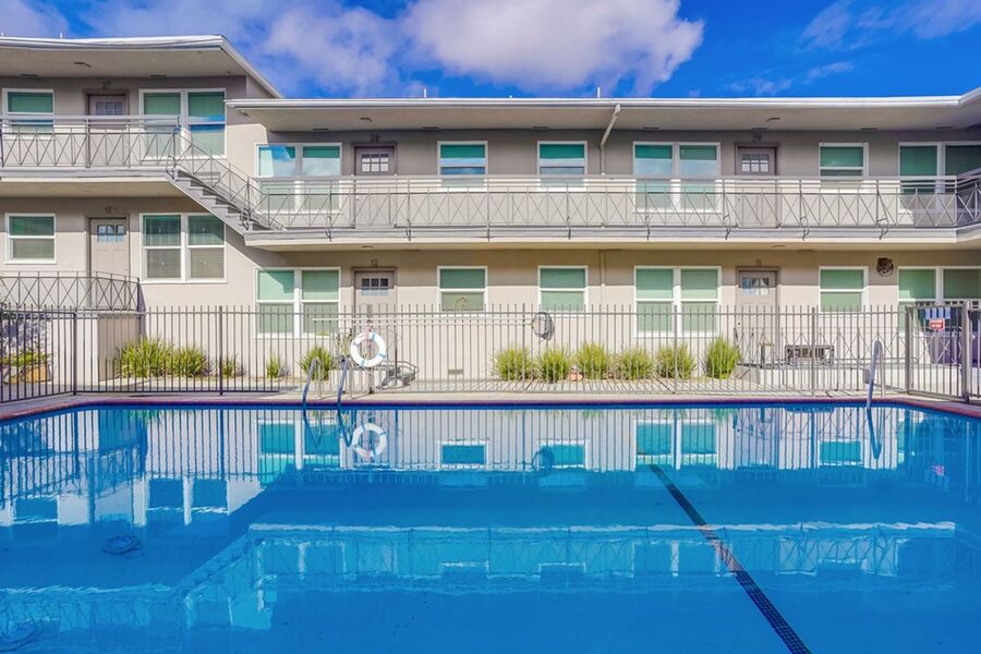 Discover a well-appointed 2-bedroom, 1-bath apartment in Inglewood, CA, featuring hardwood floors, hardwood cabinets, and a modern kitchen with quartz countertops, stainless steel appliances, refrigerator, microwave, dishwasher, and stove/oven. The unit includes ceiling fans and an in-unit washer and dryer, with additional laundry on-site. The community offers covered, gated, and secure parking with closed-circuit video monitoring, a swimming pool, a gym, and gated property access. Residents can make online payments, and the property is pet friendly.