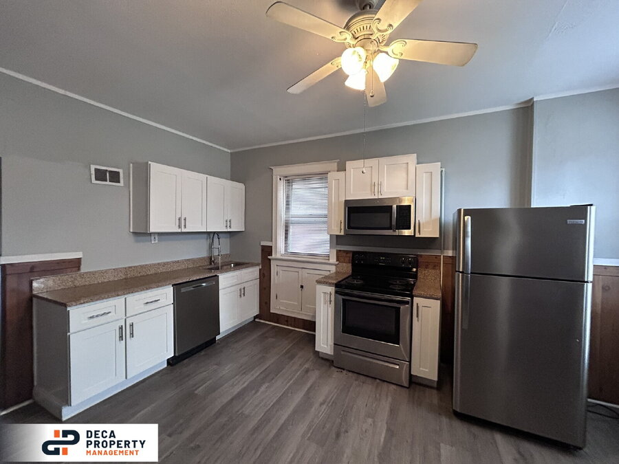 Cute 1-bedroom, 1-bath apartment in the Fox Park neighborhood, just a short walk to Fox Park, Little Fox Restaurant, and Lona’s Lil Eats. Step inside to find LVP flooring throughout, making upkeep a breeze. The updated eat-in kitchen boasts hardwood cabinetry, quartz countertops, and modern appliances including an electric stove, refrigerator, dishwasher, and microwave. The apartment also offers ample storage space. For added convenience, laundry hookups are located in the unfinished basement. Don’t wait—schedule your showing today!