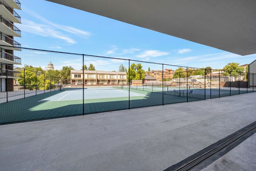 Welcome to this fourth-floor condo that opens up to the tennis courts in the heart of Salt Lake City, UT. With 2 bedrooms and 2 full bathrooms with newly remodeled flooring, it offers ample space for comfort and relaxation while giving you the benefits of being close to Temple Square and City Creek.