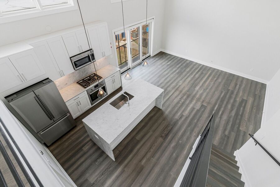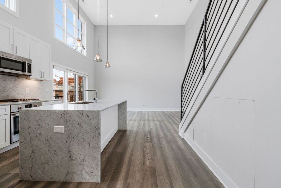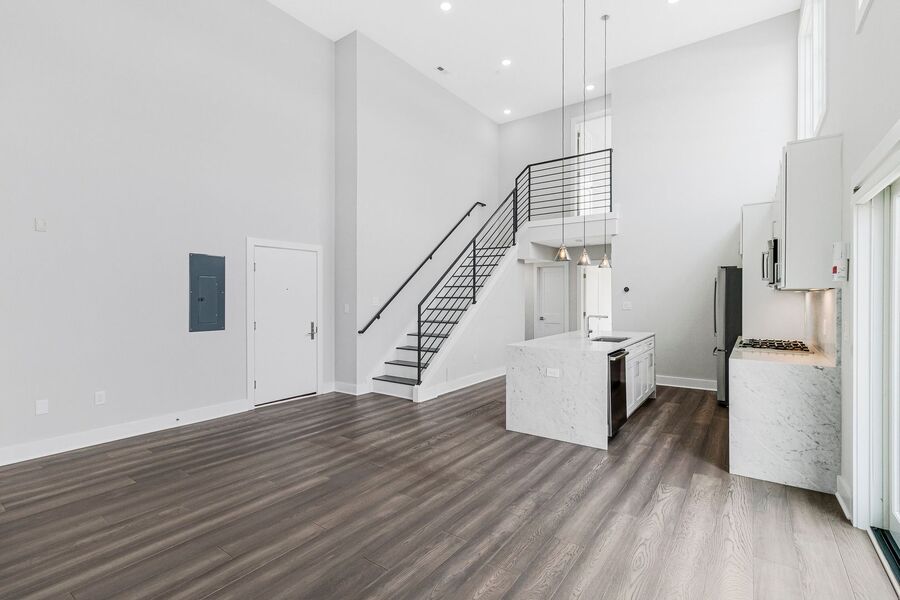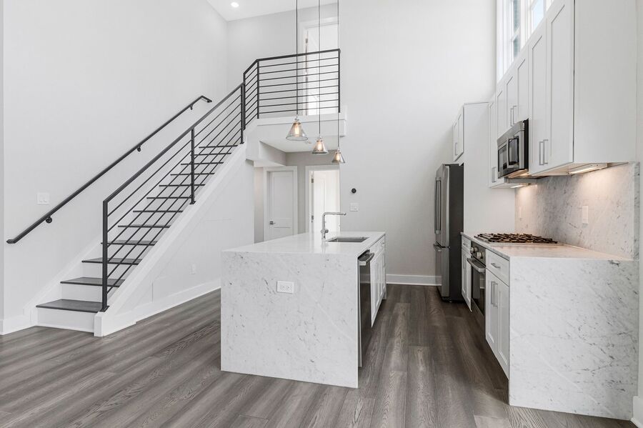 Step inside to find wide-plank hardwood floors and high ceilings that create an elegant and airy atmosphere. The modern kitchen is equipped with European-style appliances, a kitchen island, and ample cabinet space—perfect for cooking and entertaining. The open-concept living area offers plenty of room to relax and leads directly to your private balcony.