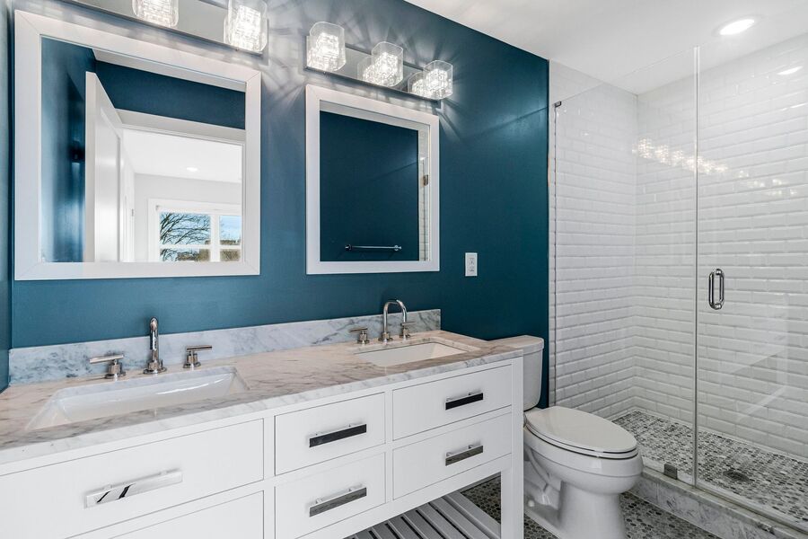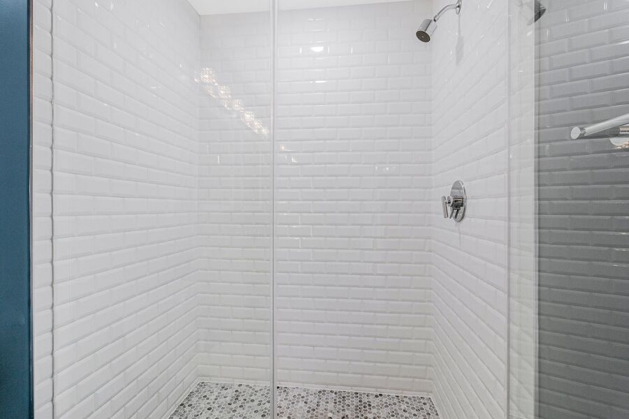 Upstairs, you’ll find the primary bedroom suite, complete with a closet and a full bathroom with a walk-in shower and double vanity, creating a comfortable and private retreat.