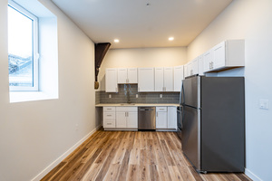 These beautiful lofts have stunning bi-level units with high ceilings, beautiful arch, tall and big windows, spiral stairs, all providing a luxury feeling. Wide plank red oak flooring, tall ceilings with recessed lighting, and bright windows throughout make this apartment feel spacious and bright. This loft has a modern and chic design featuring ceramic tile backsplash, quartz countertops, in unit washer and dryer, stainless-steel appliances dishwasher, garbage disposal, glass shower doors and MORE!