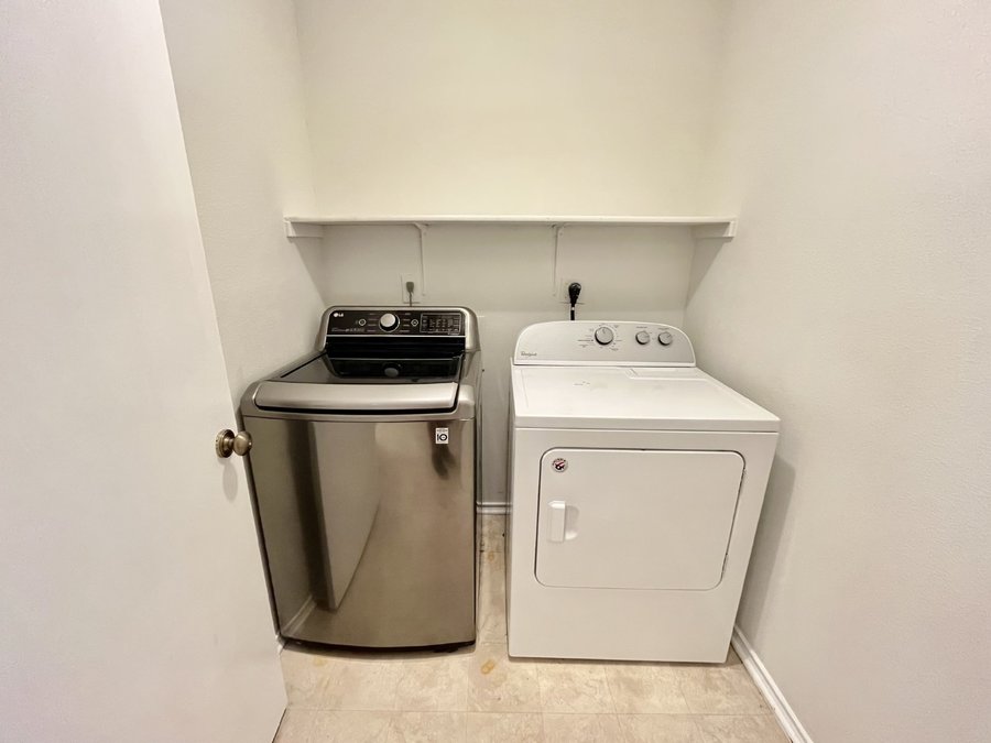 The well-appointed kitchen includes an electric stove, refrigerator, dishwasher, pantry and a convenient eat-in area for casual meals. The laundry room comes equipped with a washer and dryer, making daily routines a breeze.