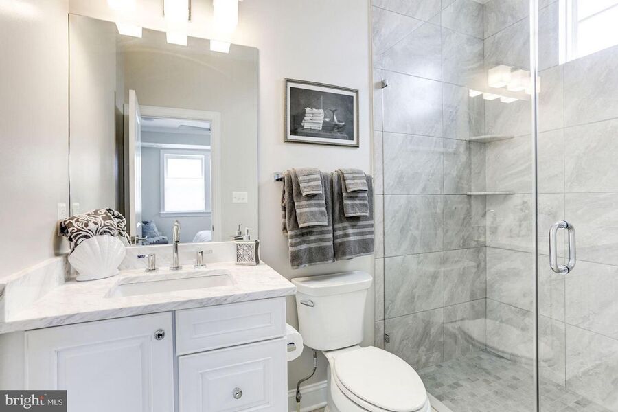 Additional full bathroom in second level hallway