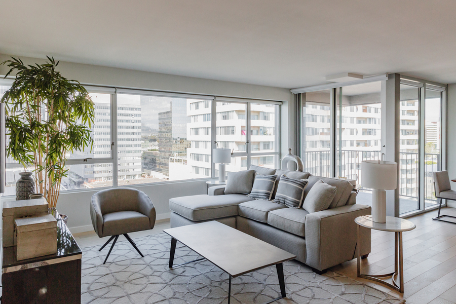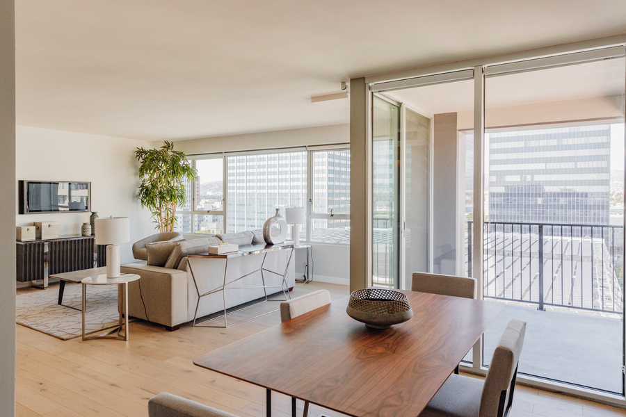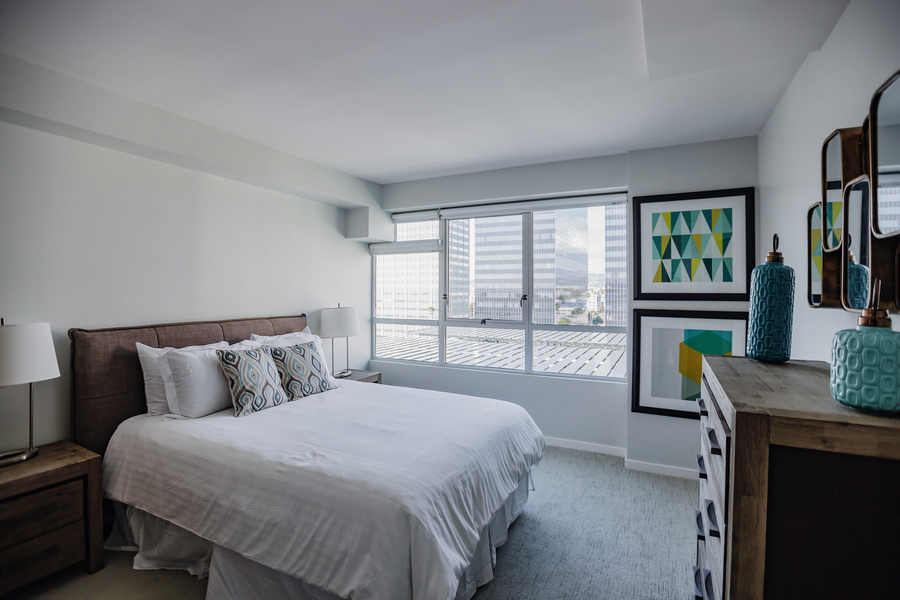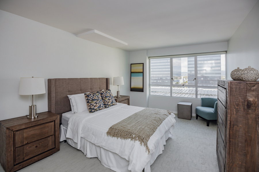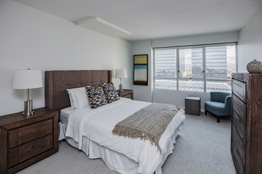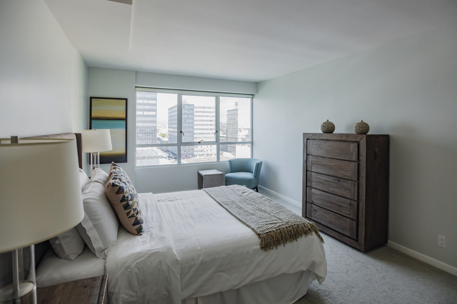 Bedrooms boast designer carpets and spacious closets. The luxury extends to the bathrooms, adorned with imported Italian tile, soaking tubs, and Grohe fixtures. Each of our apartments in Koreatown comes complete with an LG Combination Washer/Dryer, modern window treatments, and most residences offer breathtaking views of the Los Angeles Skyline or Hollywood Hills