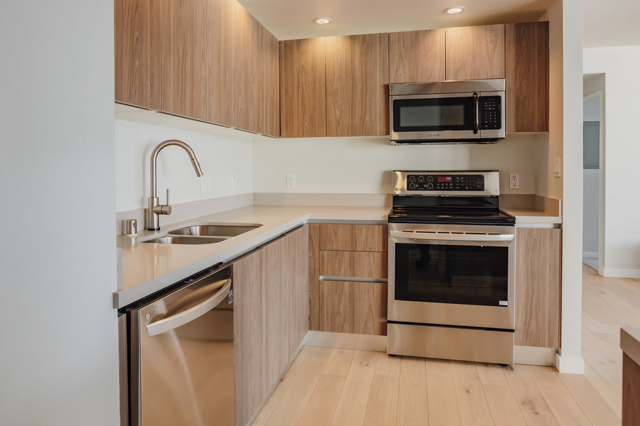 The View Los Angeles offers the ultimate in luxury apartment living. Located in the heart of Koreatown, our premium residences offer stunning interiors appointed with European touches and elegance at every turn. Come and explore your new home at our Koreatown apartments adorned with hardwood-inspired flooring throughout the common areas that lead to designer kitchens with European cabinetry, stainless steel appliances, and Caesarstone countertops.