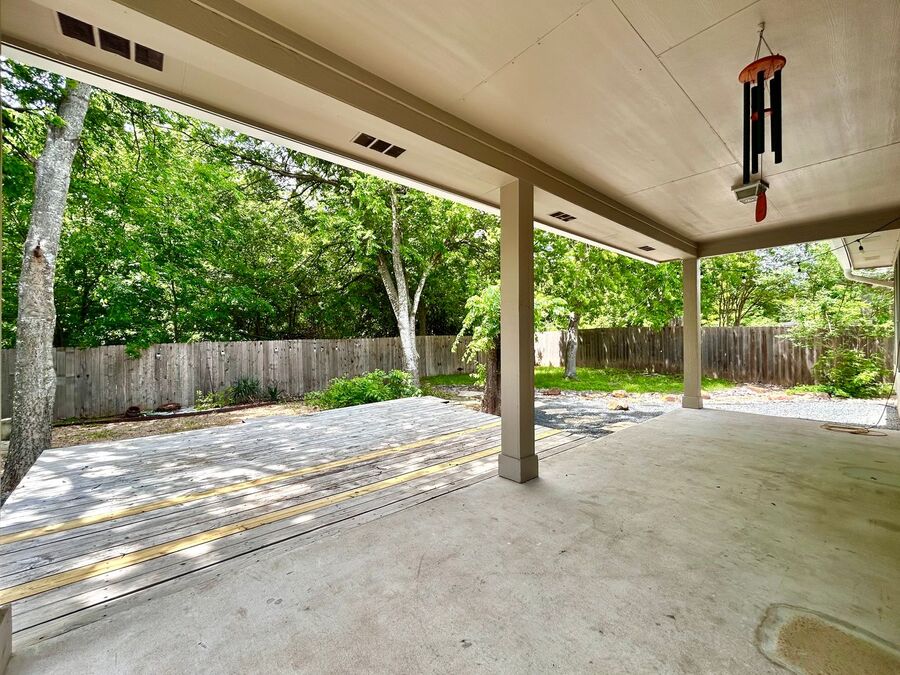 Enjoy relaxing mornings on the covered front porch or unwind in the evening on the covered deck overlooking a private, fenced backyard—perfect for outdoor gatherings or simply enjoying some quiet time. The designated laundry room adds convenience, and the bathrooms are well-appointed with bathtubs, including one with a combined tub and shower.