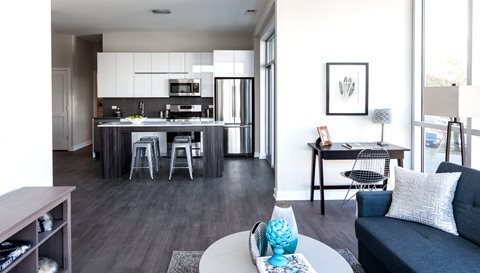 Located near the CTA Western Ave. station, these modern Logan Square apartments offer luxury living in one of Chicago s most eclectic neighborhoods. Apartments here are housed in two buildings, both four stories tall, which are connected by an elevated private courtyard with lovely landscaping. Each unit features tall ceilings, large sunny windows, hardwood floors, and modern kitchens with 5-burner gas range, quartz countertops, stainless steel appliances, and wide-plank wood floors throughout. In-unit washers and dryers are included in all units. Some layouts feature outdoor terraces. Community amenities abound at this boutique property, including a fitness center, resident lounge, and a landscaped courtyard with an outdoor kitchen and comfy patio lounge furniture. Onsite services include a Stockwell smart store, Tide Dry Cleaners, Luxer One Package System, and bicycle storage and repair station. Pets are welcome with breed restrictions, and there is an on-site dog washin