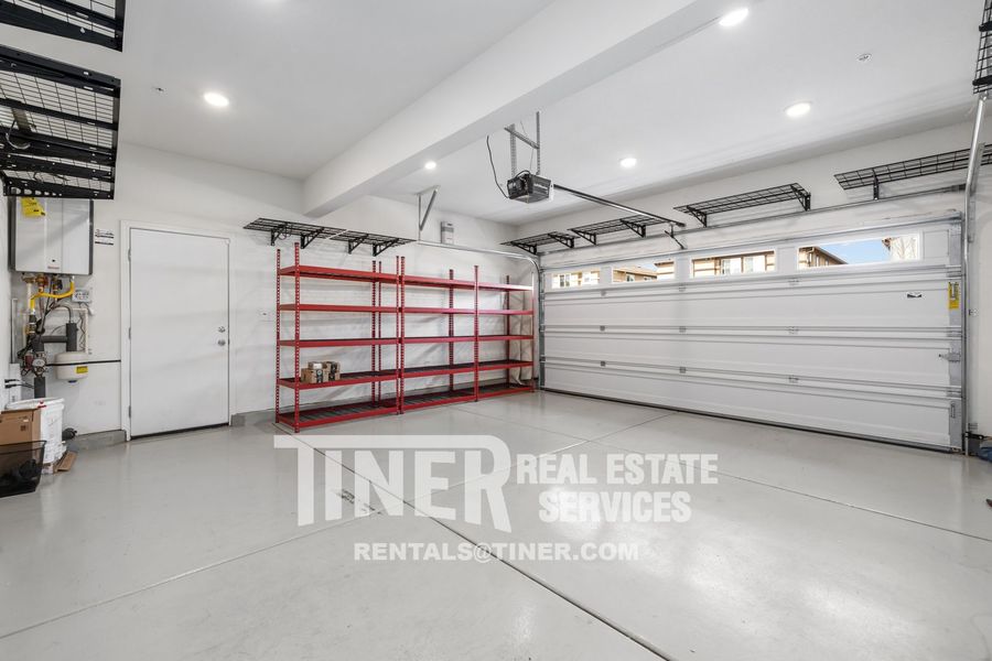 Additional features include a large two-car garage with shelving, tankless water heater, solar for energy efficiency, and low-maintenance front and backyard.