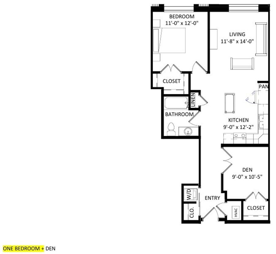 1 Bed / 1 Bath Apartment + Den at Irwin