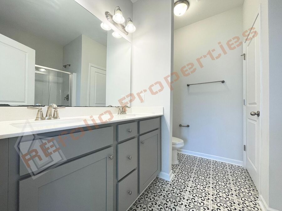 Mudroom Style entrance with bench and hooks next to the 2-car garage! Primary Bedroom with ceiling fan, trey ceilings, and walk in closet. Primary bath with beautiful tile flooring, double vanity, grey cabinets, and walk-in shower. Second floor includes a huge bonus room & 3 additional bedrooms! Hall bath with shower tub combo. Washer and Dryer hookup.