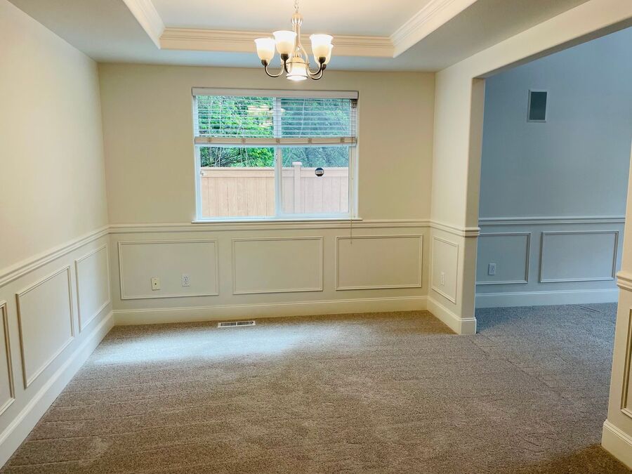 Step inside and be greeted by soaring vaulted ceilings in the formal living and dining rooms, creating a grand and inviting atmosphere. Special details such as crown molding and chair rail accents add a touch of elegance throughout the main floor, brand new carpet and paint throughout the home.
