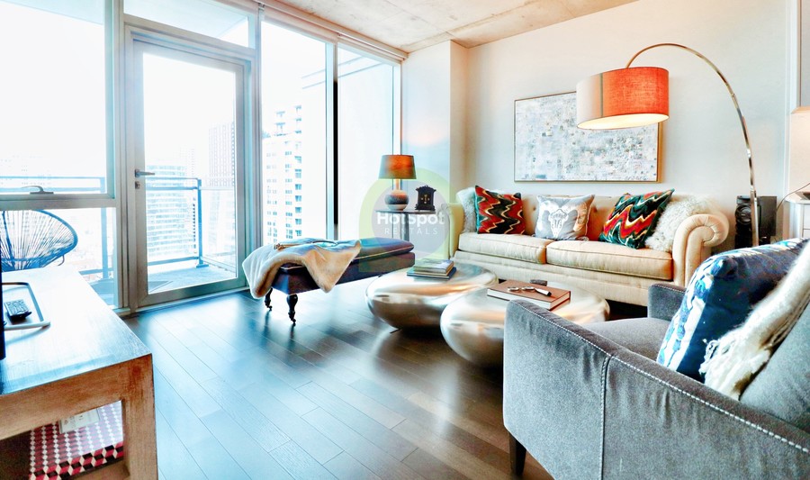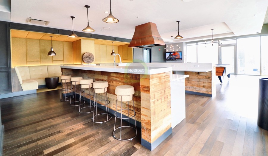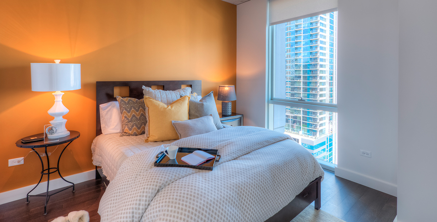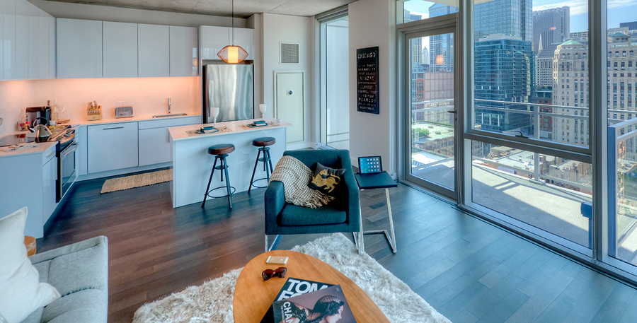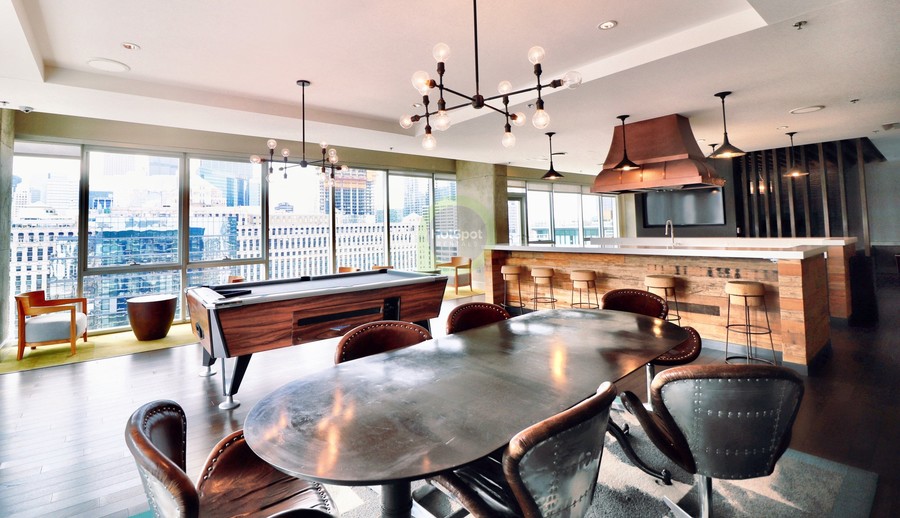 With the highest possible Transit Score of 100, this River North newbie is a 3-block drive to the I-90/94 entrance at Ohio and less than 10-minute walk to every CTA train. Convenience extends to the property as well, with all of the comforts of home in this contemporary urban playground. Hit the outdoor terrace and sun deck to hang out by the pool, enjoy lounging by the fire pits and grill up some steaks, or head to the rooftop for amazing views, a chef s kitchen, media area and pool table. When it s cold outside, head to the fitness center, get some work done in the business center or just sit and relax by the lobby fireplace. You really have the best of inside and outside worlds, with world-class restaurants, tons of shopping and the most vibrant entertainment in the city. And, of course, the property is 100% smoke-free with 24-hour security door staffing.