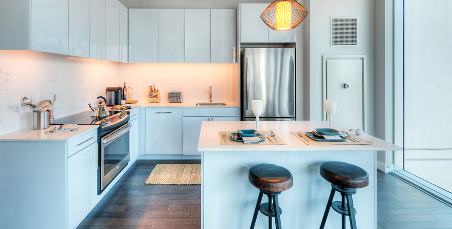 When it s time to call it a night, these apartment homes are just the place to kick off your shoes and relax. Smart, well-designed living spaces include balconies in every unit, floor-to-ceiling windows, modern kitchens, hardwood floors and in-unit washers and dryers. Earth friendly LED lighting, Nest Learning Thermostats, and non-toxic paints, glues and sealants make it environmentally sensitive as well.