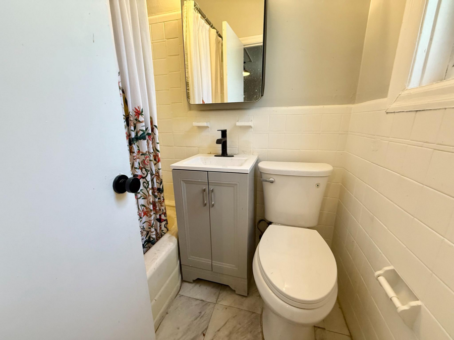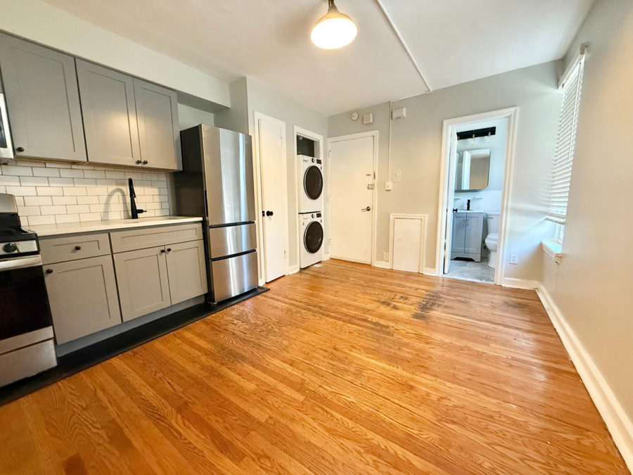 Each residence includes an in-unit stacked washer and dryer, brand-new appliances including a refrigerator, oven, and microwave, custom quartz kitchen countertops, and fully renovated bathrooms with new vanities, tile, and fixtures. The common areas have been completely transformed to match the upscale finishes of the apartments themselves.