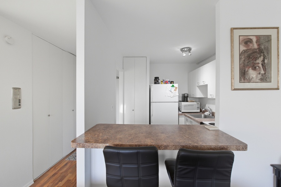 Junior one-bedroom in Sandburg Village / Old Town. Features include hardwood floors throughout and an open kitchen. Bedroom nook will fit a queen. The condo has plenty of natural western light. Building amenities include a sundeck, outdoor pool, and 24-hour doorman. Conveniently located just steps from Wells Street dining and nightlife, two blocks from the Red Line and Jewel-Osco, Lincoln Park, gyms, coffee shops, and retail.