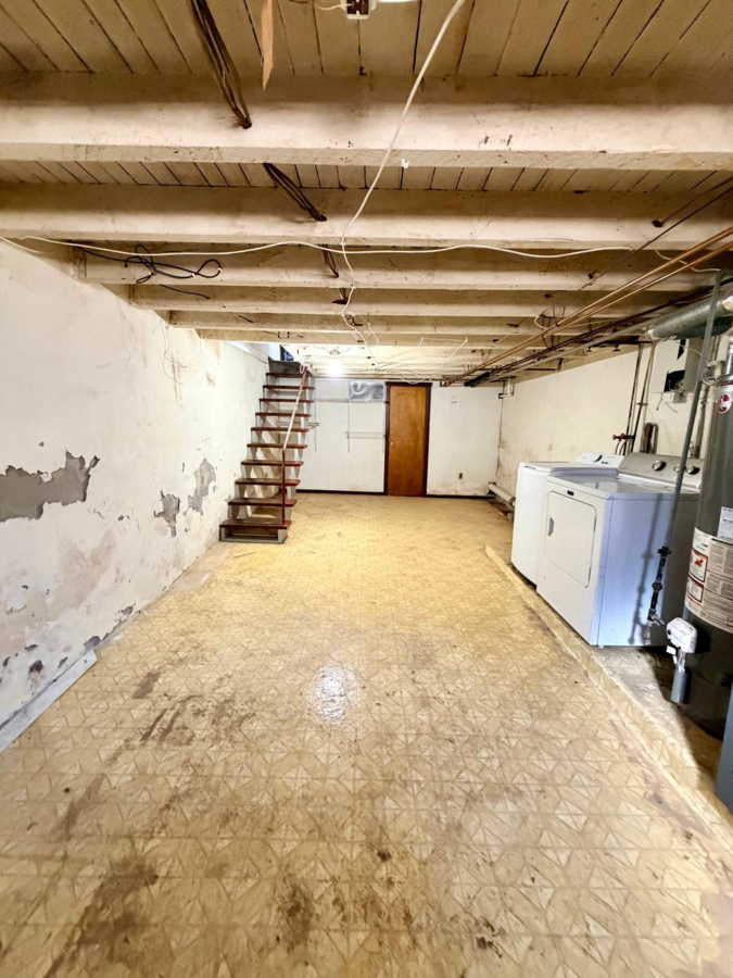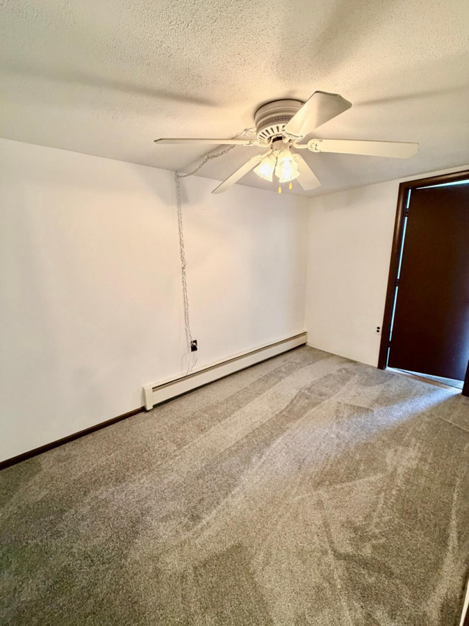 The kitchen features white shaker cabinets, a dishwasher, microwave, stove, refrigerator, and plenty of cabinet space for storage. The bright living area and bedrooms are generously sized and filled with natural light, while ceiling fans add extra comfort. Additional highlights include a basement with washer/dryer hookups and a private backyard, perfect for relaxing or entertaining.