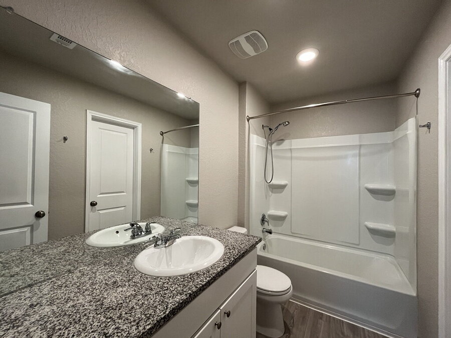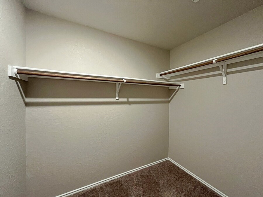 The primary bedroom offers a calm retreat with a generous walk-in closet and an ensuite that includes a garden tub/shower combo and single vanity. Additional bedrooms provide flexibility for guests, work, or hobbies. A laundry closet with washer/dryer hookups adds everyday convenience, along with an HVAC system featuring a programmable thermostat, tankless water heater and the assurance of a carbon monoxide detector.