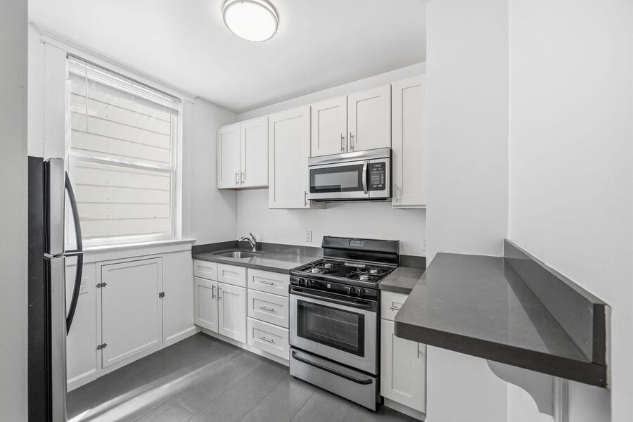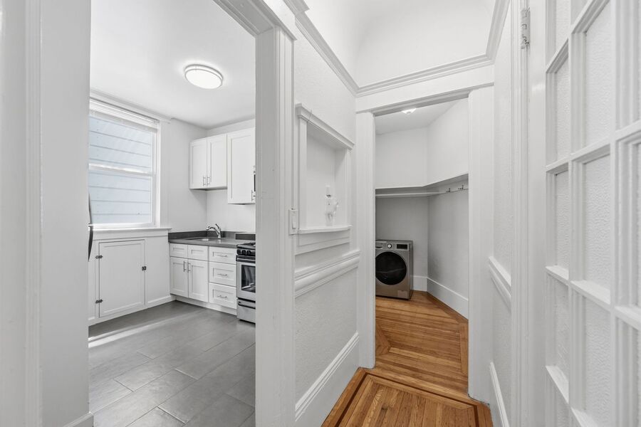 Enjoy the rare convenience of in-unit laundry, making city living that much easier. Large windows invite in natural light, enhancing the comfortable and efficient layout of this studio.