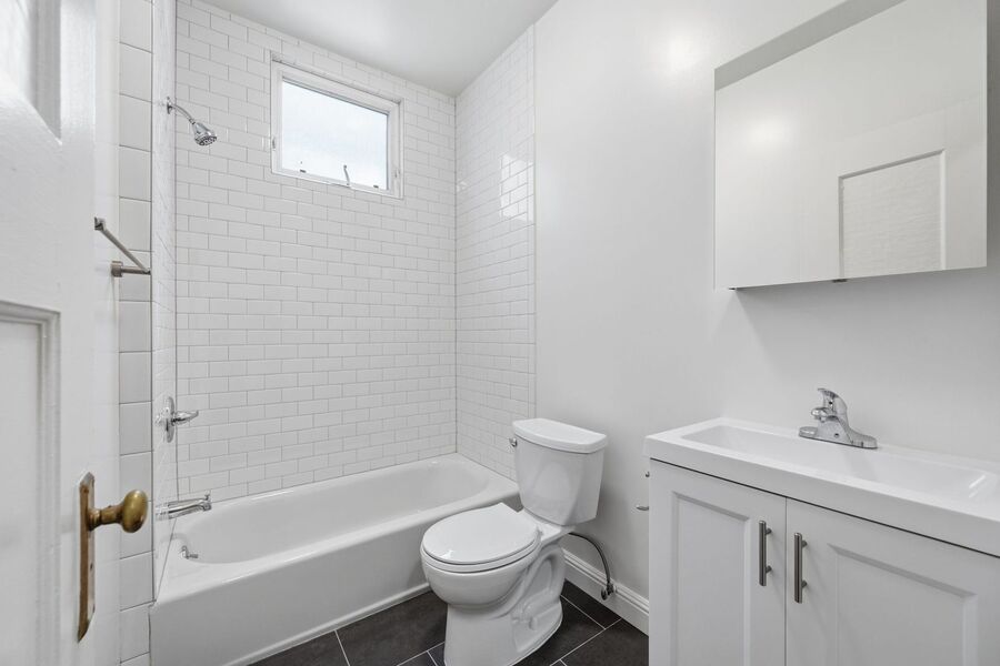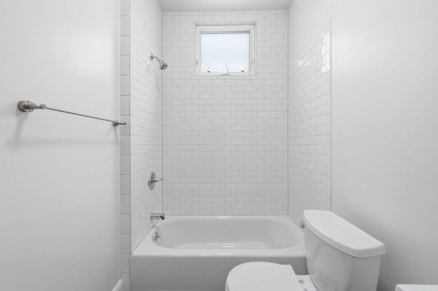 The home features a sleek, renovated kitchen complete with stainless steel appliances, offering both style and functionality for everyday living. The updated bathroom boasts a contemporary tiled shower/tub combination, creating a clean and polished space.