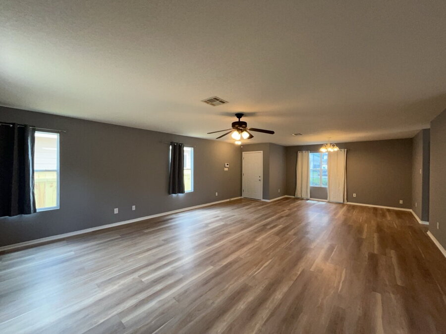 The interior features a blend of carpet, ceramic tile and vinyl flooring, creating a stylish yet practical environment. The open living and dining room combo provides a versatile space for relaxing or entertaining. An included alarm system and HVAC with a programmable thermostat add peace of mind and year-round comfort, while the solar electric system and panels help keep energy costs efficient.