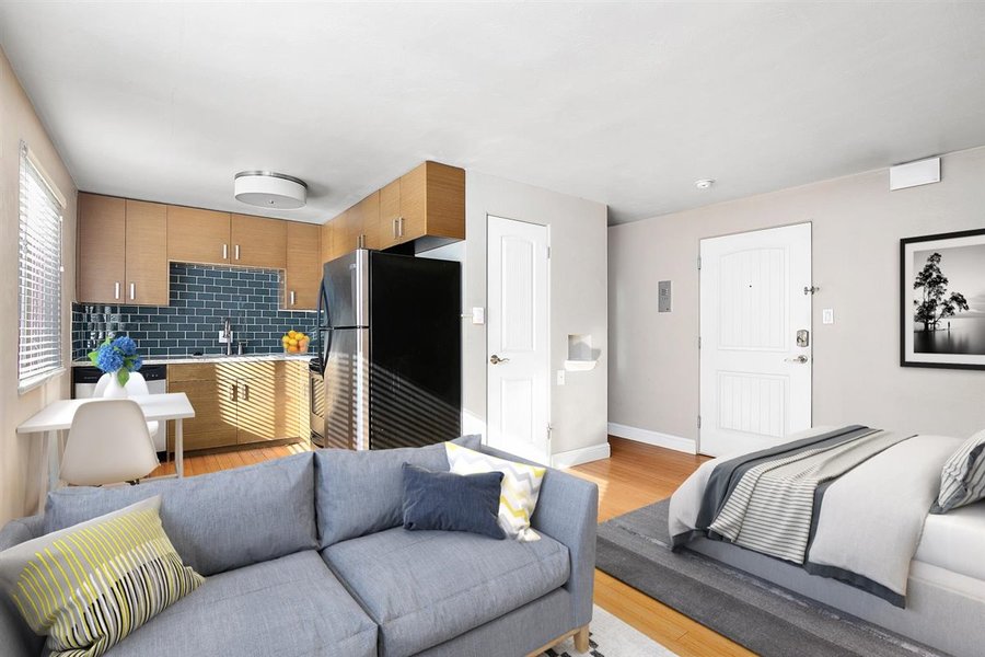 This charming apartment has beautiful hardwood floors throughout and a spacious north-facing living area that fills the home with natural light. The unit also includes a Murphy bed, making great use of the studio space.