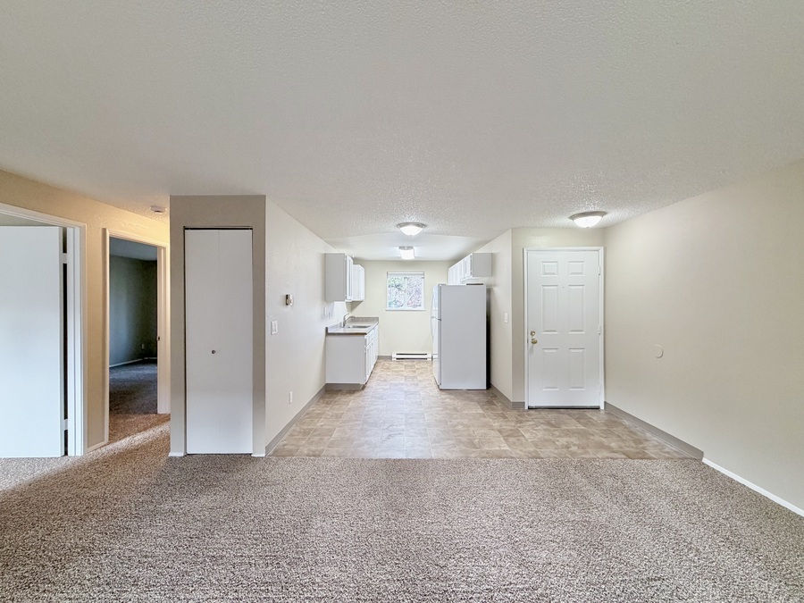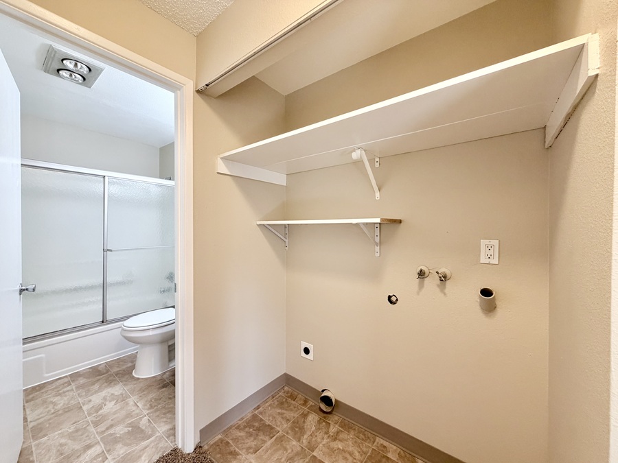 The kitchen is both bright and functional, featuring a dishwasher, stove, and refrigerator to make cooking and cleanup a breeze. You’ll also appreciate in-unit washer and dryer hookups, offering the ease of laundry right at home.