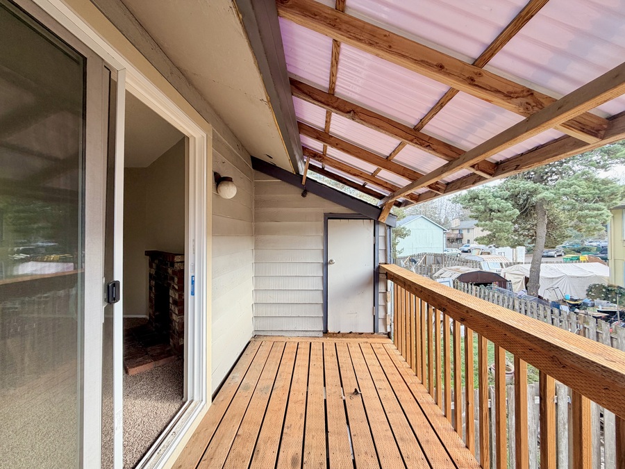 The open living area extends to a covered deck, perfect for relaxing, enjoying fresh air, or entertaining year-round. An additional outdoor storage closet adds even more everyday practicality.