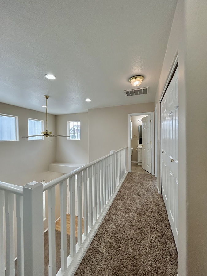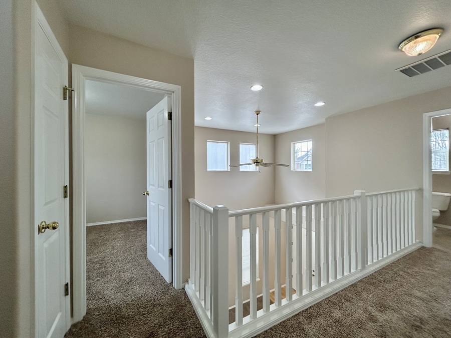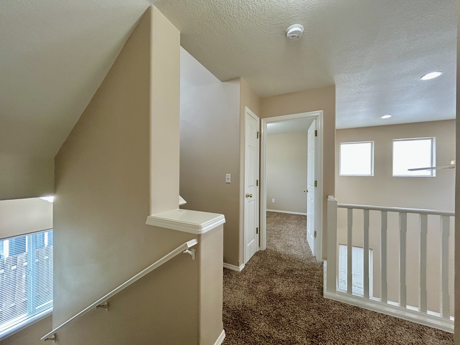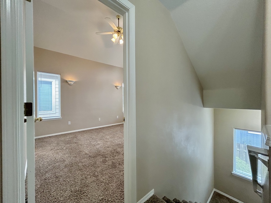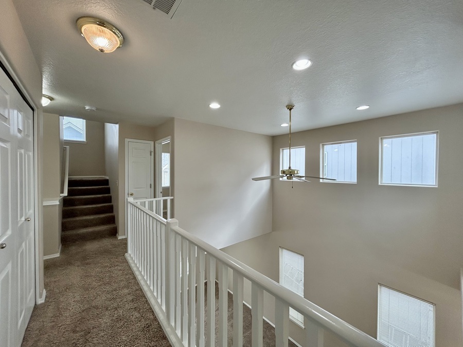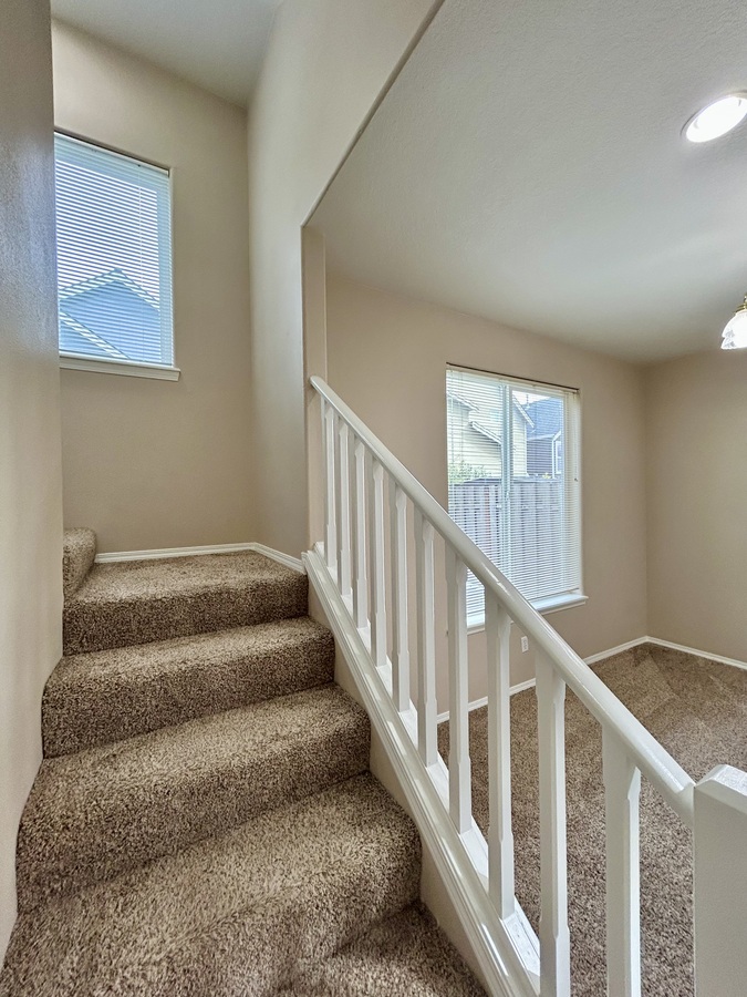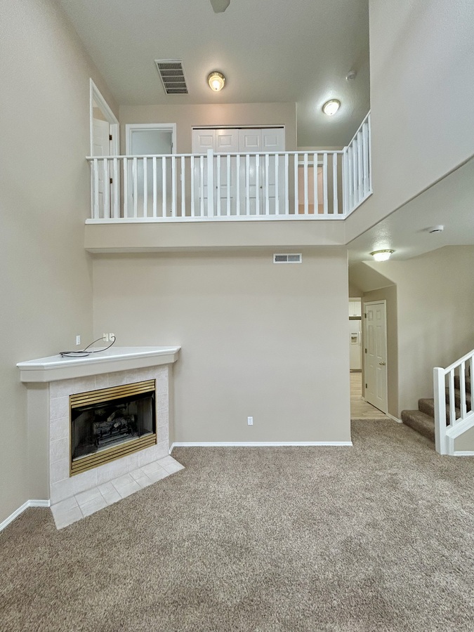 The upstairs bonus room, complete with a cozy gas fireplace, offers the perfect space to unwind (please note the mini fridge is non-operable). The easy-care yard and back patio make outdoor living a breeze, while the downstairs fireplace adds a touch of charm (cosmetic only).