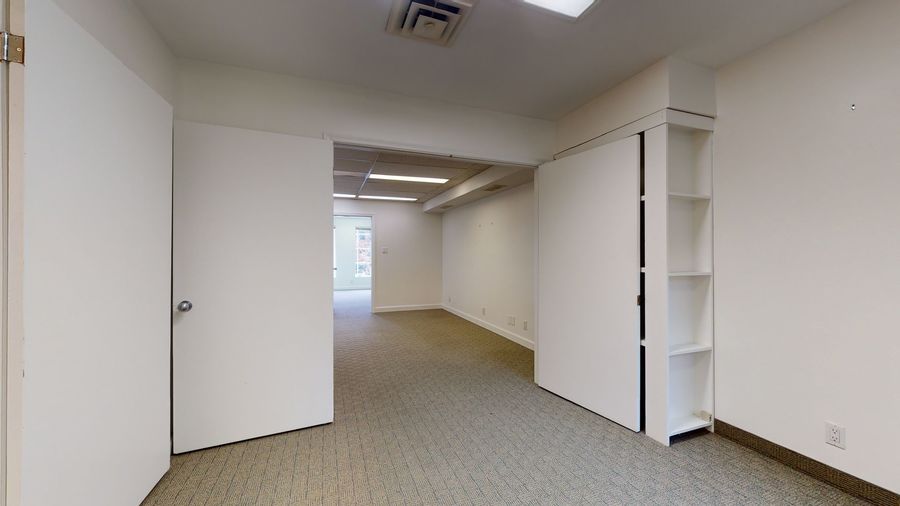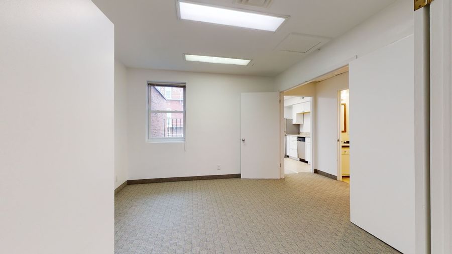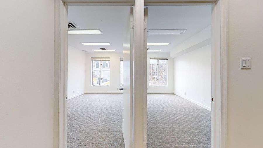 Desired location just off DuPont Circle sits a 1,304 square foot commercial space that is ready for the taking! A total of 6 rooms plus a bathroom. It has dual entrances to 2 common area/conference rooms with access to 2 front offices over-looking P St and 2 rear offices (also can function as storage rooms).