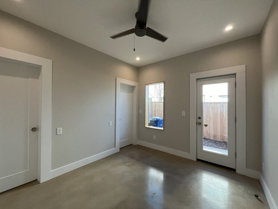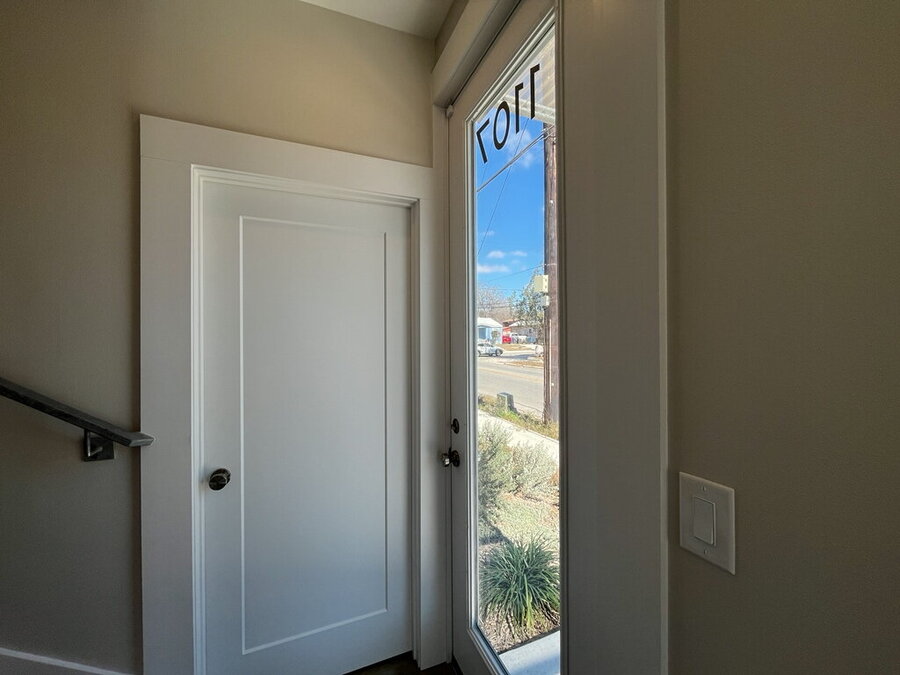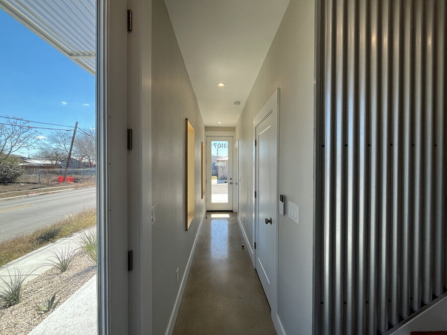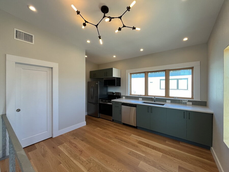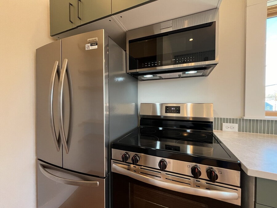 Welcome to this stylish 2-bedroom, 1.5-bath home offering comfort, functionality, and a great city-connected lifestyle. The upper level features an open living area with a well-appointed kitchen and living room, complemented by ceramic tile, stained concrete, and vinyl flooring throughout. The kitchen is equipped with solid countertops, an eat-in dining space, electric stove, microwave, refrigerator, and dishwasher, perfect for both everyday living and entertaining. Upstairs, enjoy a convenient half bath and step out onto the balcony to take in city views from this desirable corner location.