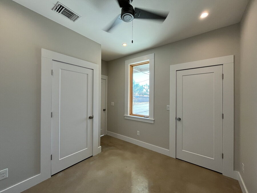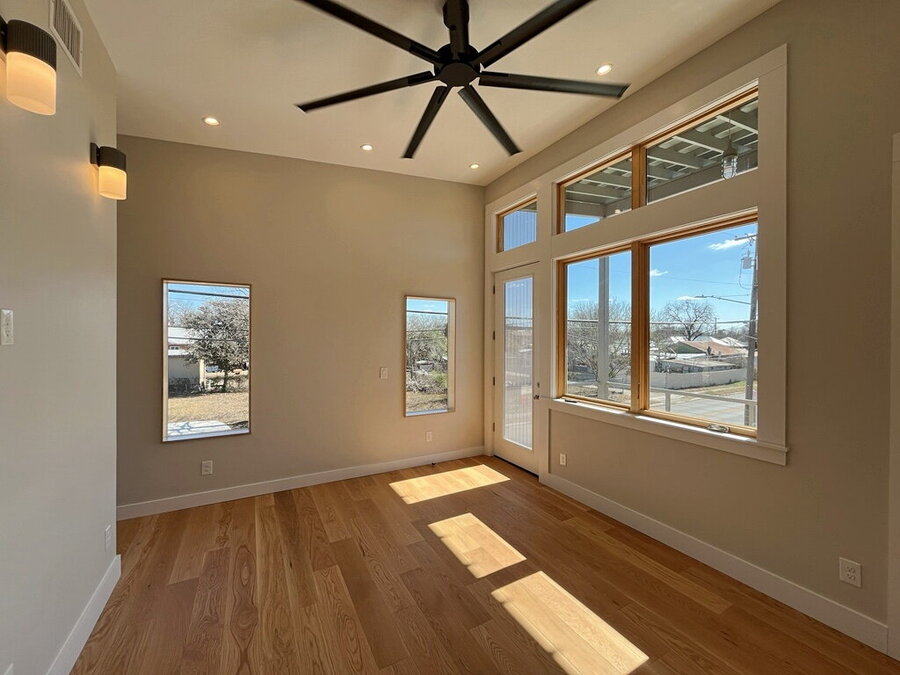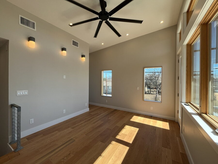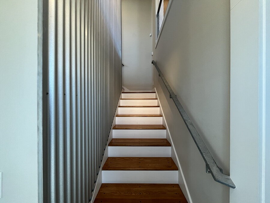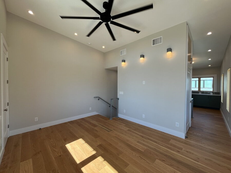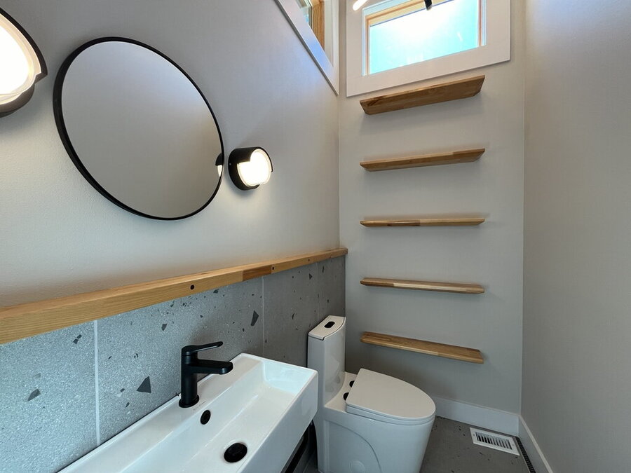 Welcome to this stylish 2-bedroom, 1.5-bath home offering comfort, functionality, and a great city-connected lifestyle. The upper level features an open living area with a well-appointed kitchen and living room, complemented by ceramic tile, stained concrete, and vinyl flooring throughout. The kitchen is equipped with solid countertops, an eat-in dining space, electric stove, microwave, refrigerator, and dishwasher, perfect for both everyday living and entertaining. Upstairs, enjoy a convenient half bath and step out onto the balcony to take in city views from this desirable corner location.