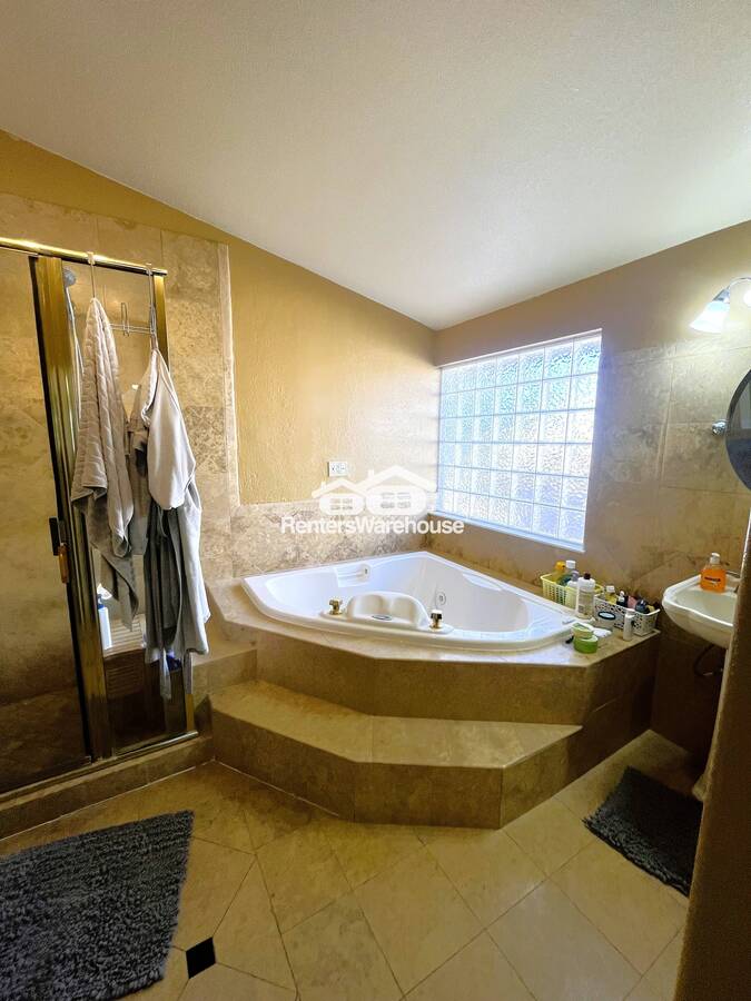 FURNISHED, SPACIOUS, CORNER LOT HOME WITH A 3-CAR GARAGE and POOL & SPA! LIGHT AND BRIGHT LIVING AREA W/LARGE WINDOWS*FORMAL DINING, *WET BAR* , Living Room W/FIREPLACE*REMODELED KITCHEN CABINETS WITH QUARTZITE COUNTERTOPS*SS APPLIANCES*, SLIDING GLASS DOORS TO THE YARD, *AWNING ON LEFT SIDE*COVERED PATIO W/SHADE AND FAN*PUTTING GREEN*PALM TREES & MATURE LANDSCAPING*LARGE PRIMARY BR W/FIREPLACE & PLANTATION SHUTTERS*HUGE CLOSET ROOM W/WINDOW*4TH BR CONVERTED INTO CLOSET*SPACIOUS PRIMARY BATH W/SEP TUB & SHOWER*LARGE SECONDARY BRS W/CLOSETS*NEWER FLOORING UPSTAIRS*INTERCOM*SPARKLING POOL & SPA W/POOL HEATER*WATER HEATER ,WATER SOFTENER, BLINDS,* CLOSE TO ELEMENTARY AND MIDDLE SCHOOLS*MUST SEE IN SUMMERLIN ACROSS FROM A PARK & CLOSE TO TENNIS COURTS!