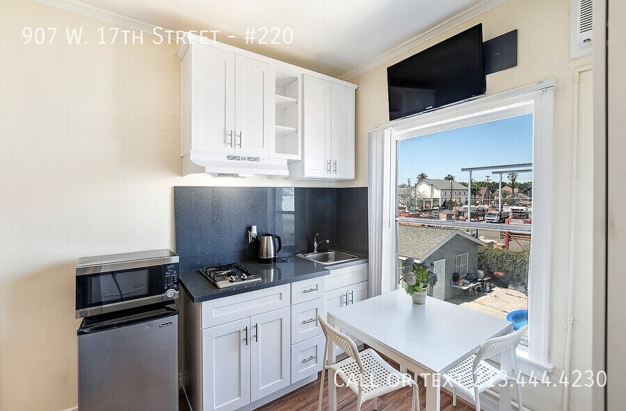 . Units have laminate flooring, vertical blinds, new kitchen appliances, ceiling fan, full sized bed, and are freshly painted.