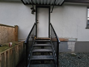 This fully renovated home features a living and kitchen area on the main floor with a half bathroom. Upstairs you will find a bedroom area and full bathroom.