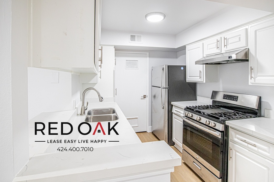 Welcome to your open-concept oasis! This recently remodeled living room boasts recessed lighting, providing ample illumination and a modern feel. Say goodbye to cluttered and disorganized entryways with your hallway coat closet! This versatile storage solution is designed to keep your outerwear, shoes, and accessories neatly organized and easily accessible. The closet features ample space for hanging coats, jackets, and other items. Large windows flood the space with natural light, creating a bright and airy atmosphere. Enjoy the luxury of having central heat and air conditioning to ensure that you will always be comfortable in your new home. The cherry on top of this living room is the sliding glass door that leads out to your very own patio, providing the perfect space for entertaining guests or enjoying a quiet evening outside. Continuing to the galley kitchen with its sleek and modern space boasts New Stainless Steel Appliances, including a refrigerator and range stove oven. In addition, the quartz countertops are durable and easy to maintain, perfect for meal preparation and entertaining. The custom hardwood cabinetry adds a touch of elegance and provides ample storage space for all your kitchen essentials. At the very end of the kitchen is a water heater closet which is conveniently located and provides easy access for maintenance. The hallway closet features a sleek and modern storage space with sliding mirrored doors! Designed to keep your clothes, and shoes neatly organized and easily accessible. Providing a full-length mirror that is perfect for getting ready in the morning or checking your appearance before leaving the house. Experience the ultimate in comfort and style with these two bedrooms featuring remote-controlled ceiling fans, large windows with tons of natural light, and sliding glass mirrored doors. The bedrooms are designed to provide a relaxing and comfortable environment for a good night's sleep. The ceiling fans keep the air circulating and provide a cool breeze during hot summer nights. Large windows allow natural light to flood the room, creating a bright and inviting space. The sliding glass mirrored doors not only provide a sleek and modern look but also allow you to see the entire room with a simple slide. Elevate your bathroom experience with your full bathroom featuring modern fixtures, a well-lit mirrored vanity, a window with tons of natural light, and a showerhead and soaking tub. The modern fixtures and well-lit mirrored vanity create a sleek and stylish look while providing the function you need to get ready in the morning or after a long day. The window allows natural light to flood the room, creating a bright and inviting space. The showerhead and soaking tub provide the perfect combination of functionality and luxury, allowing you to take a quick shower or enjoy a relaxing soak. Don't forget about INCLUDED PARKING and ONSITE LAUNDRY making this the perfect two-bedroom!