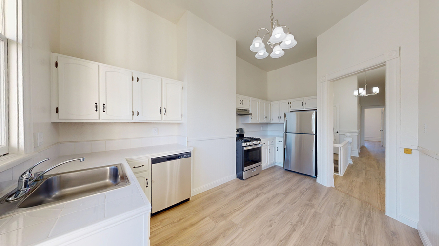 Located at 3489 16th Street, this beautifully remodeled 4-bedroom, 1-bath top-floor unit offers classic San Francisco charm with modern updates. Situated on the third floor of a walk-up building, the home enjoys excellent natural light and added privacy, high ceilings.