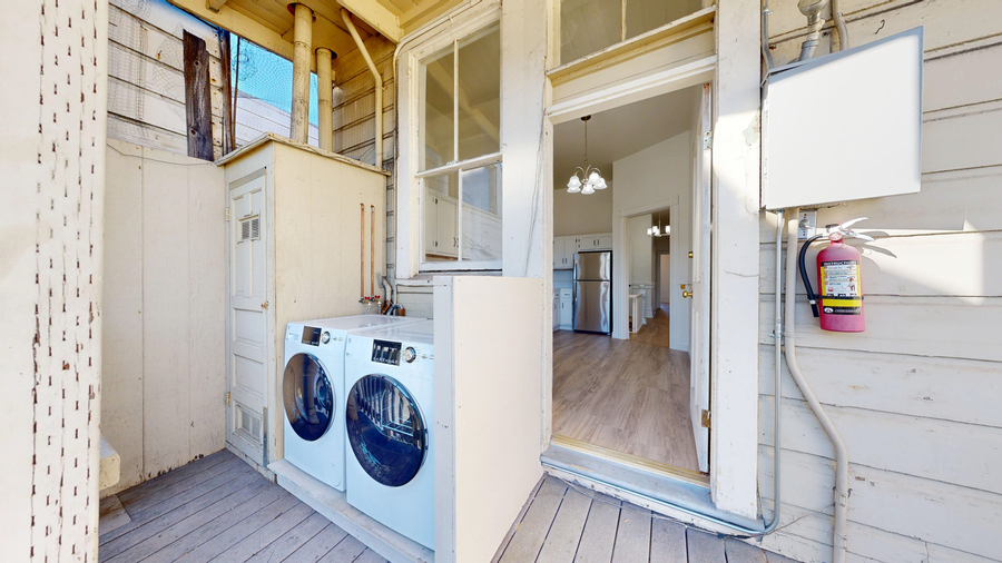 The updated kitchen features a dishwasher and modern finishes, while the spacious layout provides flexibility for roommates, home offices, or creative use. In-unit laundry adds everyday convenience.
